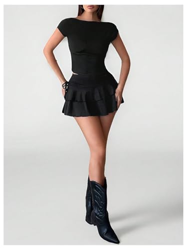HOT ! Verdusa Women's Y2k Ruffle Mini Skirt Bow Side Flowy A Line Cute Short Skirts Casual Skorts