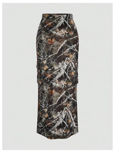 • Features: Long skirts for women, camouflage print, maple leaf and branch print, elastic waist, high rise, skinny, with flap pockets