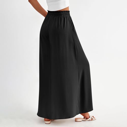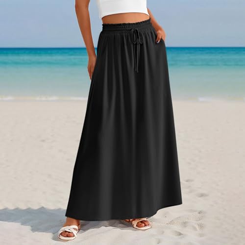 HOT ! Women Maxi Skirt Long Flowy Pleated High Waisted with Pockets Summer Fall Casual Elastic Waist A-Line Skirts