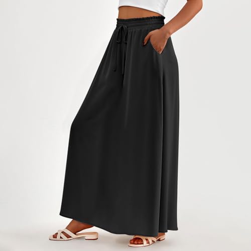 More information about Women Maxi Skirt Long Flowy Pleated High Waisted with Pockets Summer Fall Casual Elastic Waist A-Line Skirts