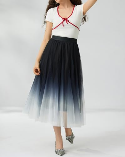 Women’s Tulle Skirts Midi Elastic High Waist Pleated Mesh Flowy A-Line Party Long Tutu Skirts… 5