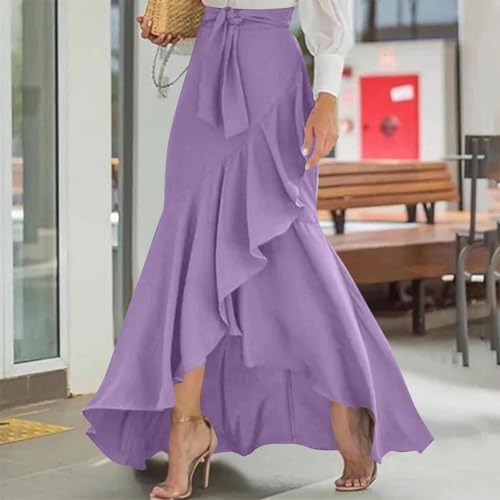 Women Fall Skirts 2025 Elegant High Waisted Irregular Ruffle Hem Long Maxi Skirt Tie Front Cocktail Wedding Outfits 2