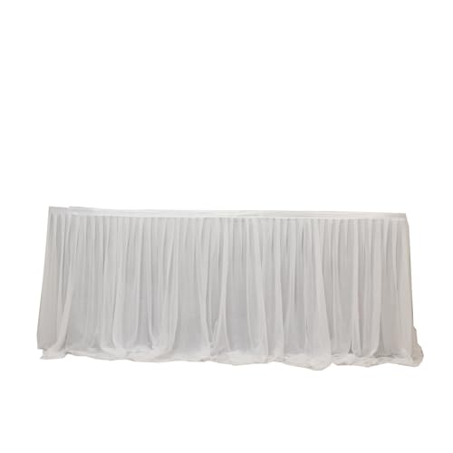 Efavormart Sheer Chiffon Table Skirt 14ft White – Pleated Ruffle Skirting with Polyester Backing, Shimmer Sheer, Wrinkle-Free Fabric 1