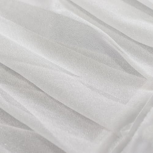 More information about Efavormart Sheer Chiffon Table Skirt 14ft White – Pleated Ruffle Skirting with Polyester Backing, Shimmer Sheer, Wrinkle-Free Fabric