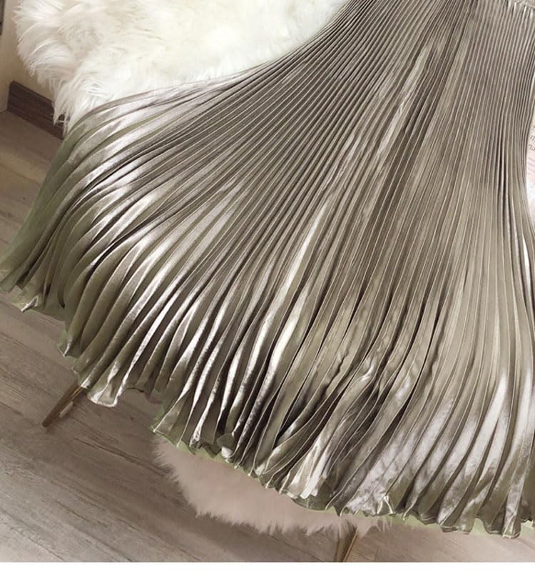 TONCHENGSD Women's Satin Metallic Pleated Accordion Long Maxi Skirt 5