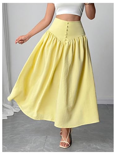 HOT ! MakeMeChic Women's Linen Skirt High Waist Button Ruffle Hem A Line Flowy Maxi Skirts