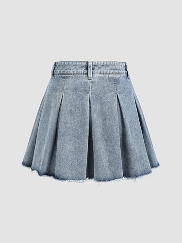 HOT ! CIDER Women's Denim High Waist Pleated Raw Hem Mini Skirt
