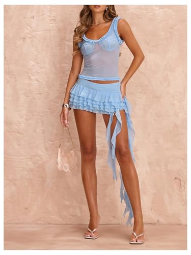 HOT ! Floerns Women's Y2k Mini Skirts Low Waist Tiered Layered Ruffle Trim Going Out Skirts