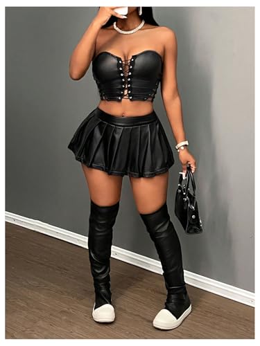 More information about MakeMeChic Women's Party Plus Size Faux Leather Mini Skirt Pleated A Line Flare Skirts