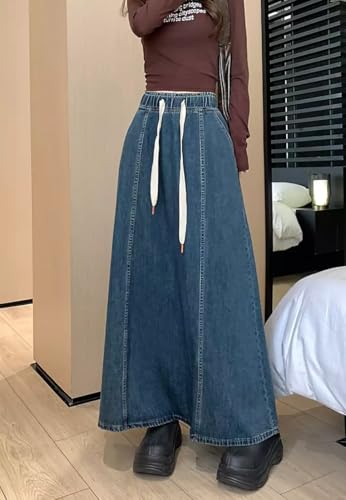 • Features: Long jean skirt for women, high waist skirt, with drawstring design, ankle length, a line skirts women, flare hem, loose fit, simple and personalized design.