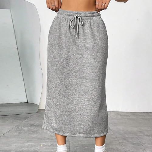Women's Midi Skirt Drawstring High Waist Sweat Skirts with Pockets Solid A Line Maxi Skirts Businon Patched Work Pencil Skirt 6