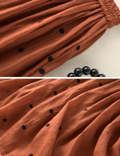 • Feature: Mid calf length, polka dots, high elastic waist, drawstring linen midi skirt for women.