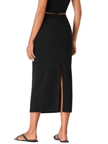 Vrtige Women's Stretchy Knit Pencil Skirt Elastic High Waist Button Split Bodycon Midi Skirt 1