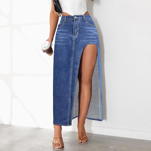 • Mix and match this denim maxi skirt with different clothing pieces, accessories like bags and necklaces, and shoes to create unique ensembles suitable for any occasion, whether it's a casual day out or a formal event.