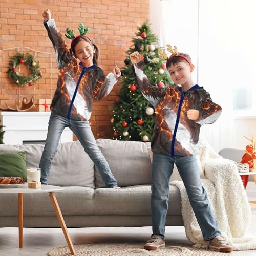 Fiery Dragon with Glowing Veins Toddler Fleece Jacket Girl Boys Hooded Fleece Jacket Coat Warm Outwear Zip-up 3-10T 4