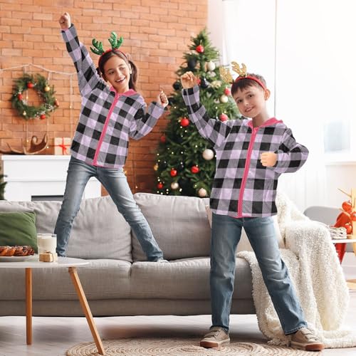 GuoChe Purple Buffalo Plaid Tartan Black Check Scotland Classic Toddler Boy Fleece Jacket 6