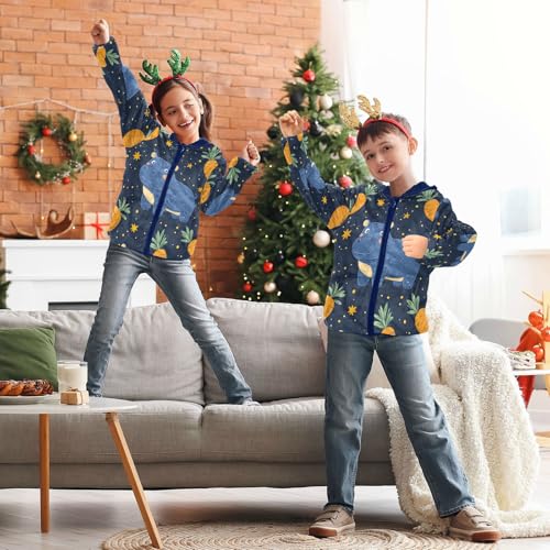 Blue Hippo Orange Carrots Toddler Fleece Jacket Girl Boys Hooded Fleece Jacket Coat Warm Outwear Zip-up 3-10T 3