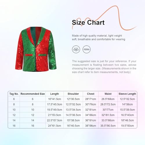 Choomomo Kids Sparkly Sequin Coat Lapel Long Sleeve Fully Lined Jacket Top for Latin Jazz Disco Dance 6
