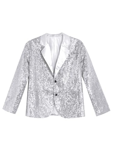 Girls Sequin Dance Jacket Kids Button Down Blazer Jacket Casual Long Sleeve Glitter Lapel Suit Coat 6