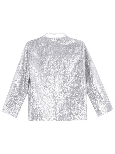 Girls Sequin Dance Jacket Kids Button Down Blazer Jacket Casual Long Sleeve Glitter Lapel Suit Coat 5
