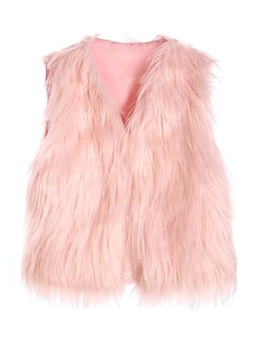 JanJean Kids Girls Faux Fur Vest Coat Open Front Waistcoat Sleeveless Furry Jacket Outerwear for Weeding Party Gowns 4