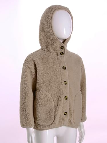 Girls Boys Fuzzy Polar Fleece Jacket Kids Winter Warm Button Down Coat Long Sleeve Hooded Outerwear 6
