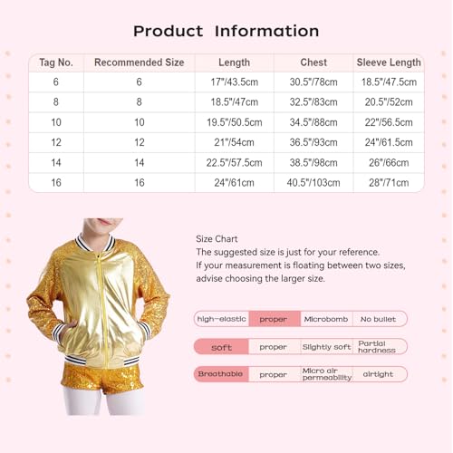 More information about Kids Girls Jazz Dance Tops Long Sleeve Zipper Closure Jacket Coat Raves Festivals