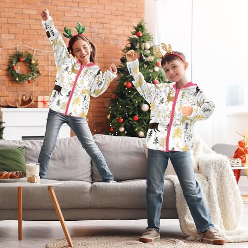 OTVEE Christmas Deers Tree Snowflake Kids Hoodie Jacket Fall Spring Full Zip Warm Outwear Coat 6