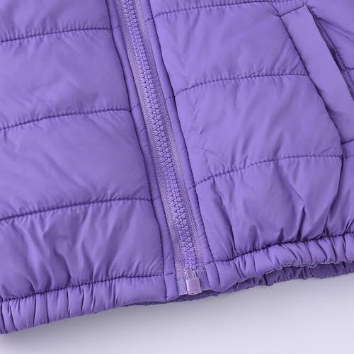 EnJoCho Boys Girls Middle Kids Hooded With Pockets Solid Color Short Cotton Jacket Ski Jacket Girls (Purple, 7-8 Years) 5
