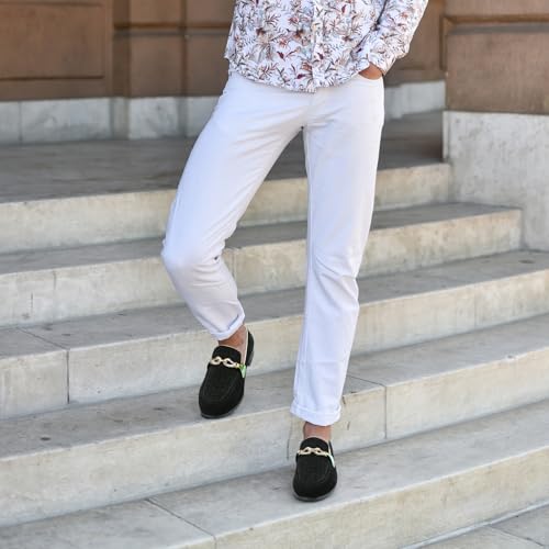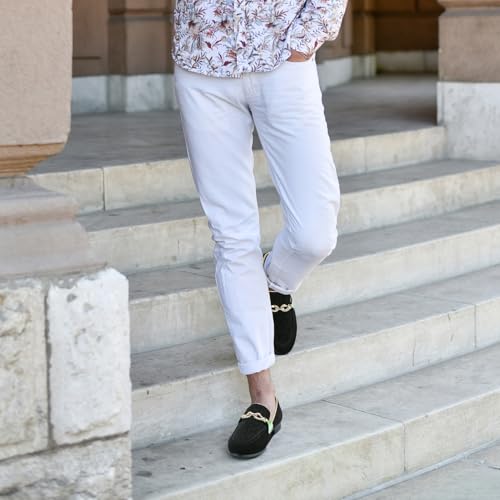 • [Classic Style] The surface of this black men's loafers is mainly made of black suede with metal decoration.