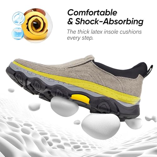 UPIShi Men's Hands Free Slip On Walking Loafer Slip-ins Casual Canvas Lightweight Indoor Outdoor Cushioning Shoes 6