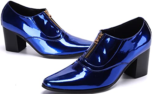 Santimon Mens Loafers Metallic Patent Leather Block-Heel Booties – Pointed-Toe Zipper Ankle Dress Shoes, Party Chunky Heels 5