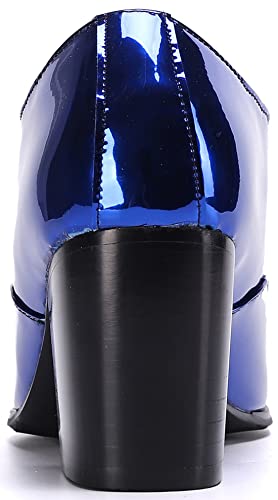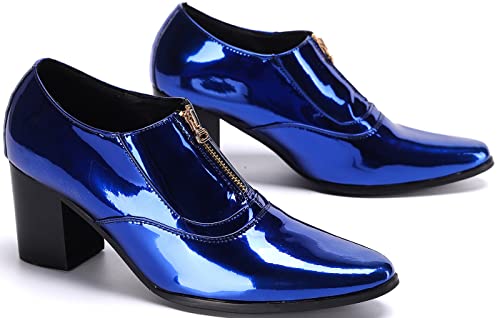 More information about Santimon Mens Loafers Metallic Patent Leather Block-Heel Booties – Pointed-Toe Zipper Ankle Dress Shoes, Party Chunky Heels