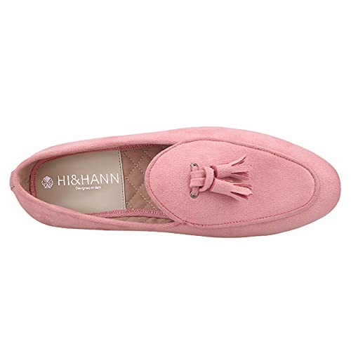 HI&HANN 2021 New Pink Color Velvet Tassel Men Loafers British Style Classic Men Smoking Slippers for Wedding and Party Plus Size 7