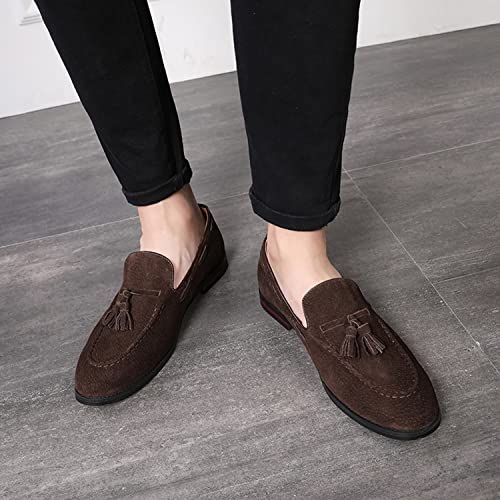 CMM Men's Suede Slippers Loafers Dress Shoes with Tassel Flats Slip-on Prom Loafer Coffee 10 6