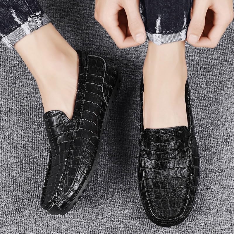 HOT ! Men's Loafers Shoes Round Toe Faux Leather Plaid Loafer Shoes Anti-Slip Resistant Flat Heel Wedding Slip On(Black,10)