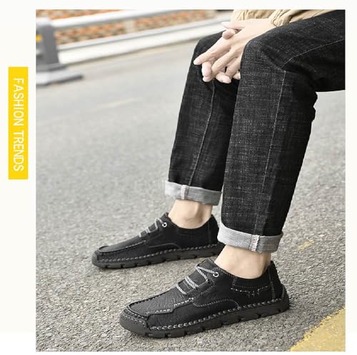Men's Casual Leather Shoes Hand-Stitched Fashion Classic Loafers Lightweight Lace-Up Non-Slip Wear-Resistant Work Shoes 6