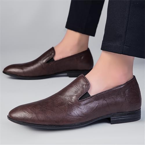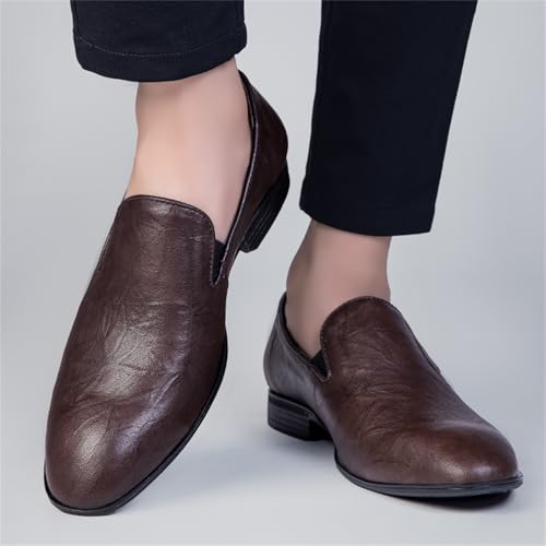 Mens Casual Genuine Leather Slip On Loafers Shoes Non Slip Round Toe Lightweight Soft Dress Smoking Penny Shoes for Driving Work Walking Formal Uniform Prom Weddings Office 7