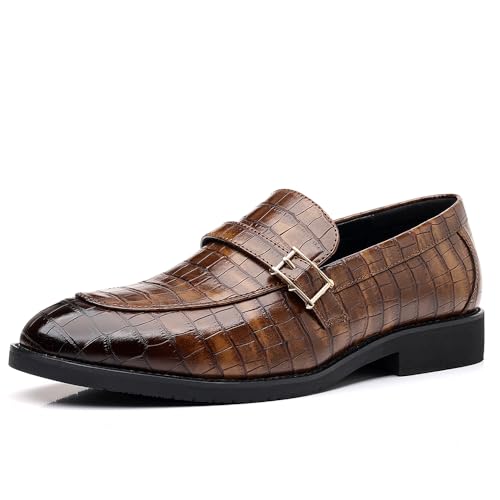 • PREMIUM DESIGN: Luxurious crocodile pattern leather loafers featuring elegant metal buckle detail and classic silhouette for sophisticated formal wear