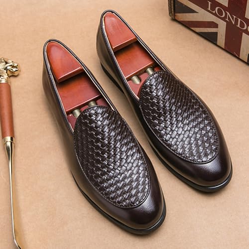 Santimon Men’s Slip-On Leather Loafers Classic, Comfortable Woven Dress Shoes for Office, Weddings, and Casual Wear Brown 10.5 US 6