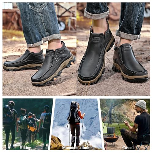 Men's Leather Dress Loafers Slip On Waterproof Boots for Men, Non Slip Lightweight Breathable Business Hiking Shoes for Wedding Walking Travel 4