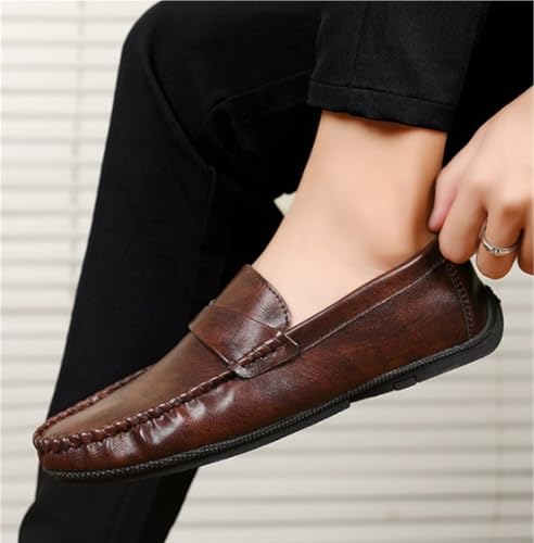 Mens Leather Slip On Outdoor Casual Breathable Loafers Simple Moccasins Lightweight Comfortable Wedding Shoes 5