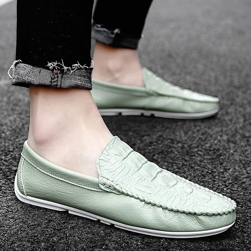 Men's Loafers Shoes Round Toe Crocodile Print Vegan Leather Anti-Slip Lightweight Flat Heel Outdoor Slip-on 6