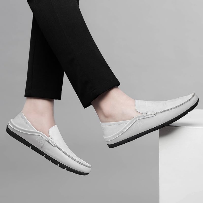 HOT ! Loafers for Men Round Toe PU Leather Crocodile Print Loafer Shoes Comfortable Lightweight Flat Heel Classic Slip-ons