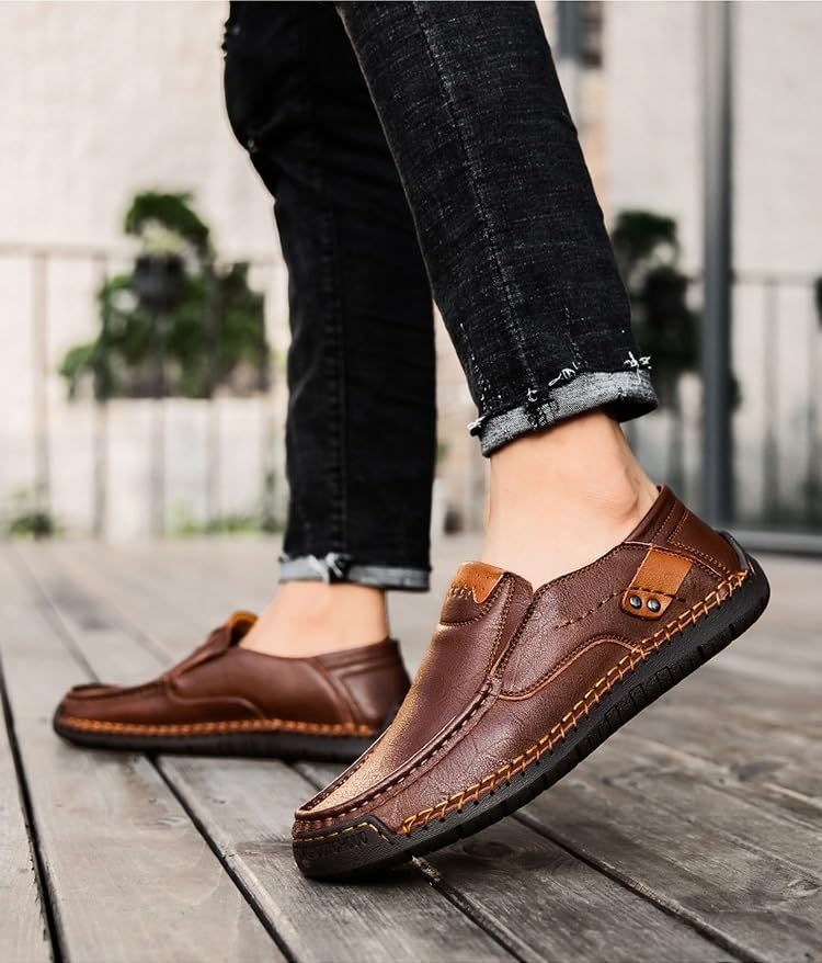 • Men’s slip on shoes upper is made of soft and breathable materials, combined with hand sewn curling technology and popular color matching, which is not only comfortable and practical, but also fashionable in popular culture