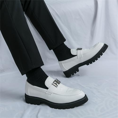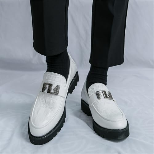 Mens Crocodile Pattern Leather Slip-On Dress Loafers Classical Casual Log Sole Non Slip Platform Penny Shoe for Formal Business Wedding 6