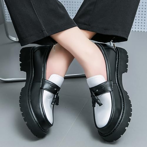 Men's Fashion Chunky Platform Penny Loafers Luxury Round Toe Slip-On Dress Shoes with Non-Slip Lug Sole for Business Work and Daily Casual Wear Sizes 6-14 7