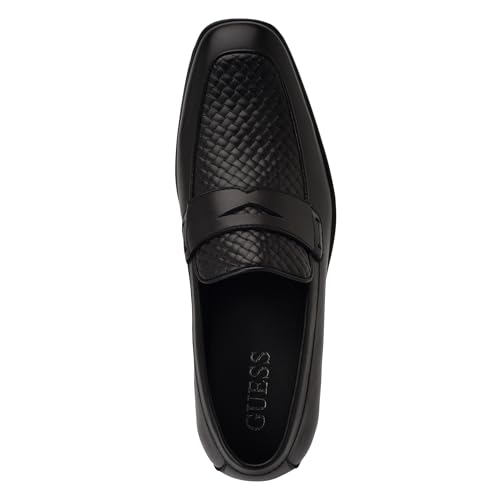 • Woven textured detailing along the vamp with a penny keeper on top, is the focal point of these loafers. The squared off toe and memory foam insole add to its appeal. Est. 1981, Guess is a global lifestyle brand and a symbol of a young, adventurous lifestyle.