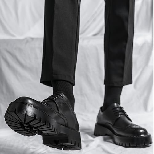 Men's Leather Brogue Lace Up Dress Platform Oxford Shoes Comfort Breathable Non Slip Lug Sole Derby Shoes Casual Business Work Oxfords 6
