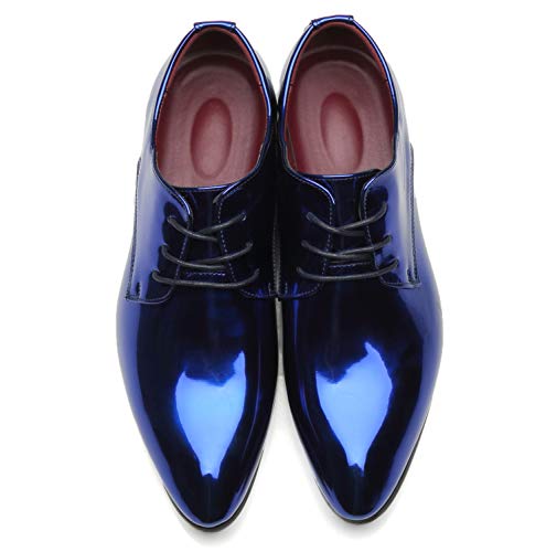 Santimon Men's Oxford Shoes Dress Pointed Toe Shiny Patent Leather Lace Up Casual Prom Party Shoes 7